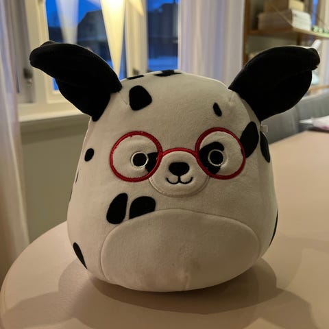 Squishmallows bamse formet som en gul banan med mykt materiale.