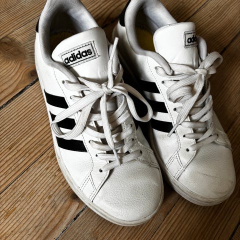 Hvite Adidas sneakers til dame. Omtrent ubrukt.