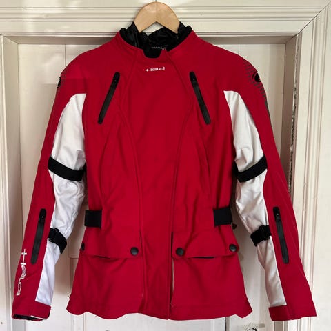 Jumbo International todelt skinndress i skinn med fargene svart, hvit og rød. Drakten er merket med størrelse 40 ( trolig mer 38) og har fine detaljer i kontrastfarger. Mykt og fint lær. Alle glidelåser er ok. Alt i alt en god dress som min datter holder på vokse ut av.