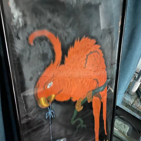 Gammelt skilt med noen hakk, men meget helt og pent.