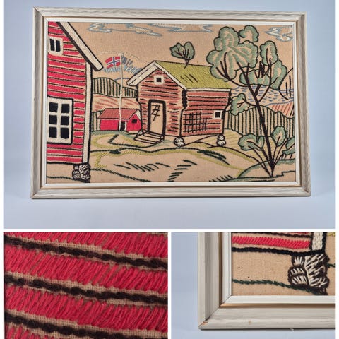 Norsk, vintage billedvev i ramme- en av De kloke jomfruer