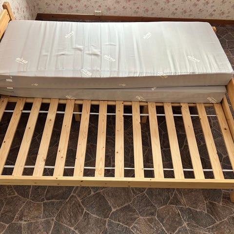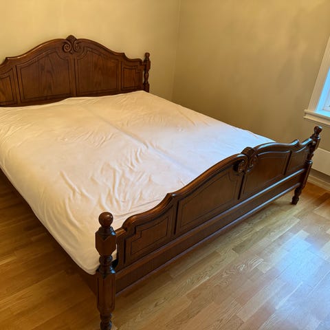 Buen Dobbelseng med utskjeringer og skuffer i enden 150cm bredde 2m lengde innvendig og 166cm x216cm utvendig Kr 5000,-