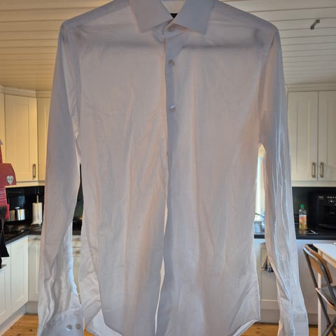 Dressmann Slim Fit skjorte i fargen hvit, størrelse XS. Laget av bomull med stretch for økt komfort. Passer til menn og har en smal passform (Slim Fit).