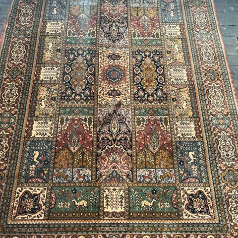 Orientalsk teppe med størrelse 304x207 cm. Teppe er håndknyttet og laget av ull. Fargene inkluderer nyanser av brun og beige.