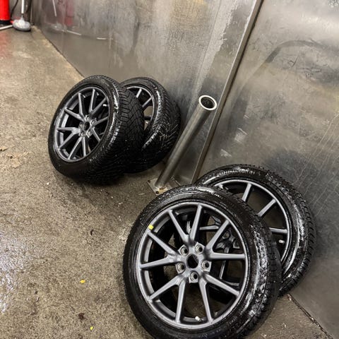 Selger godt brukte Tesla hjul. Originale Tesla hjul Følger med tpms sensor. 1 dekk som er ødelagt. Dekkene må byttes, klarer kanskje 1 sesong til.