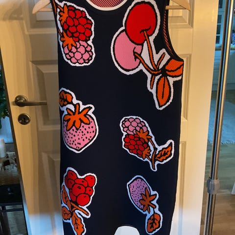 Mørkeblå med sølv striper i v hals veldig liten i str 36