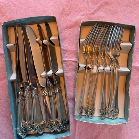 Kniver er vanskelig å finne til gamle plettbestikk, og de selges i første runde ikke alene.