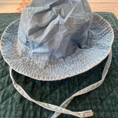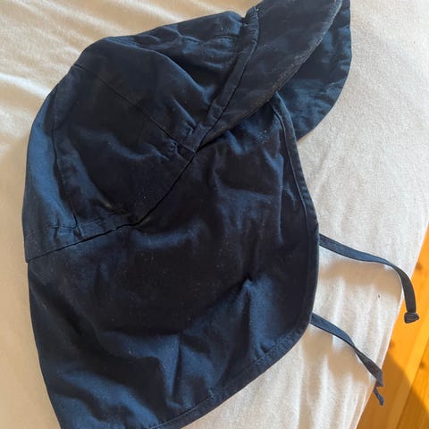 Kjempe søt solhatt fra HM. Mørkeblå. Nesten ikke brukt. God beskyttelse for nakke, med forlengelse bak.