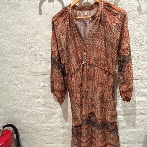 Vakker bluse i ren silke. Flott til både olabukser og dressbukser eller skjørt.