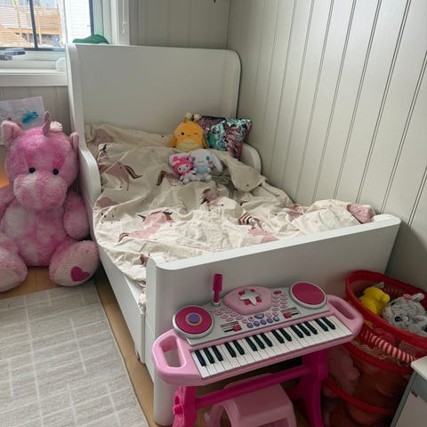 Selger supersøt juniorseng, da eieren ikke bruker den til annet enn oppbevaring av kosedyr lenger. Den er i veldig god stand, finner ingen bruksmerker! Kan trekkes ut i tre ulike lengder, 130 cm (madrassmål), 165 cm og 200 cm. Madrass kan medfølge om det er ønskelig, den siste delen av den er aldri brukt.