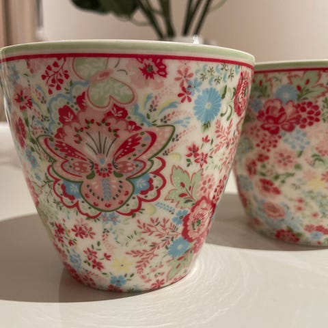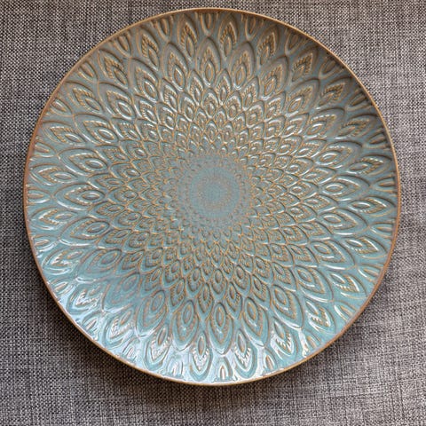 Rusta servise sett bestående av tallerkener og skåler. Tallerkenene har en dus blå farge med dekorative hvite prikker langs kanten. Skålene har samme farge og mønster, og er egnet for servering av suppe eller andre retter☺️ 6 tallerkner og 6 skåler.