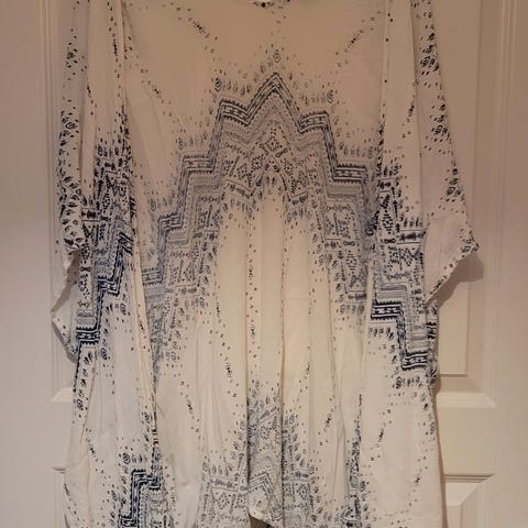 Lett, åpen cardigan/kimono-jakke med knytting i livet.