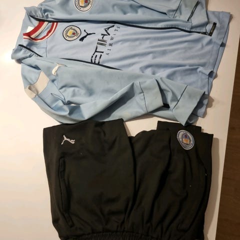 Puma Manchester City Fotballtrøye i størrelse M / 164 - unisex. Trøyen er blå og designet for fotballbruk. Til OBS: Ikke en ekte City Drakt.