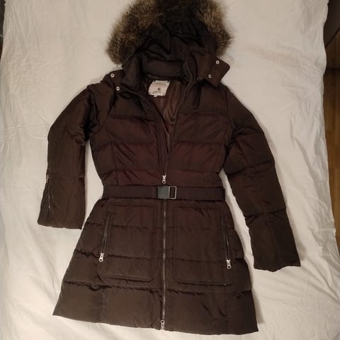 Den har dunfyll og ekte vaskebjørn pels på hetten 🤎