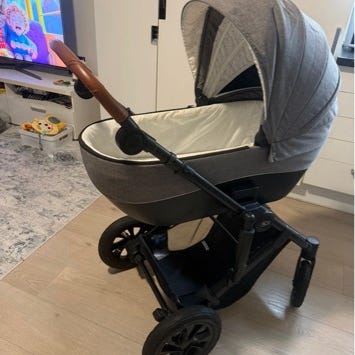 Kinderkraft barnevognsbag i beige farge. Passer til bruk som tilbehør til barnevogn for å gi ekstra plass og komfort.