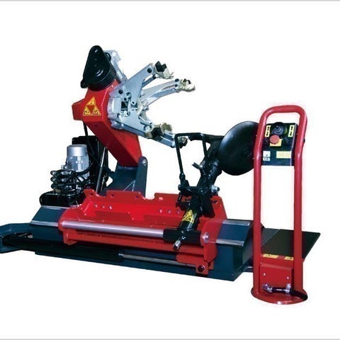 Proff semiautomatisk monteringsmaskin/dekkomlegger for last. Prisgunstig alternativ for proffe verksteder såvel som transportforretninger og busselskaper som legger om selv.