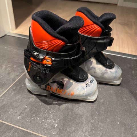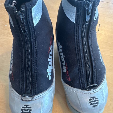 Alpina skistøvler for jente i størrelse 28. Skistøvlene er hvite med spenner for justering og har fôr som gir varme og komfort.