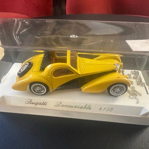 Bugatti Veyron modellbil i fargene rød og svart. Detaljert modell med synlige motor- og interiørdetaljer. Leveres med original oppbevaringsboks og ekthetssertifikat. Størrelse 1:43 leverandør Autoart. Nummerert utgave