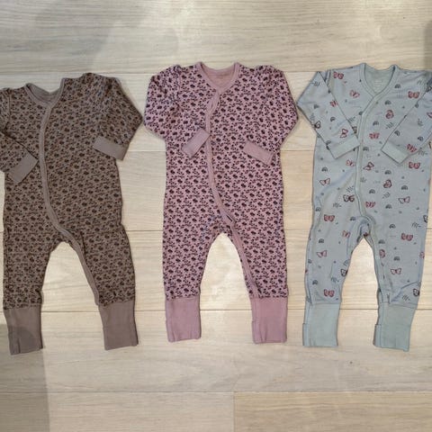 Pent brukt heldress/pysjamas i ull og bambus. En liten ubetydelig rift på høyre kne. Se bilde 3. Er super for barn med sensitiv hud. Røyk- og dyrefritt hjem.