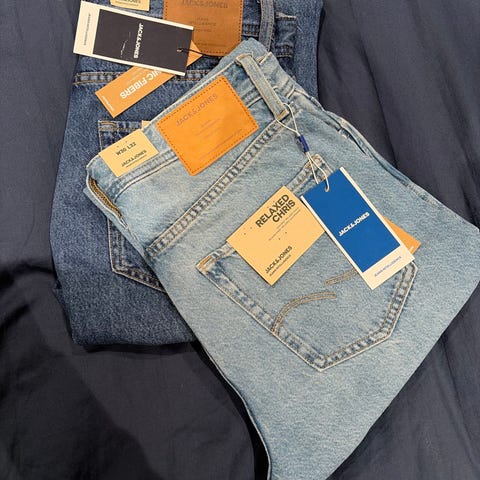 En liten flekk over den ene lommen, nærmest umulig å se.