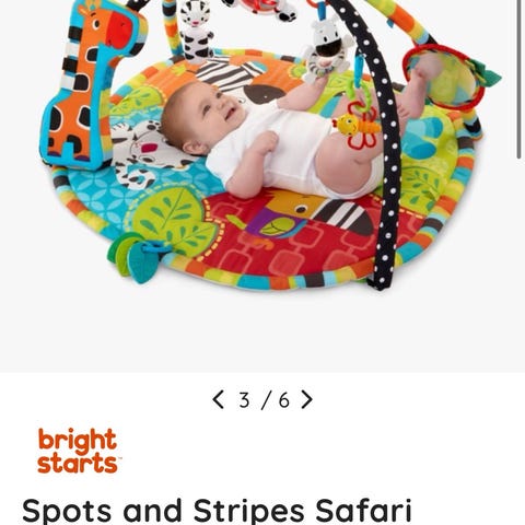 Aktivitetsbue med flere myke og fargerike figurer som kan henges på. Pent brukt av ett barn!