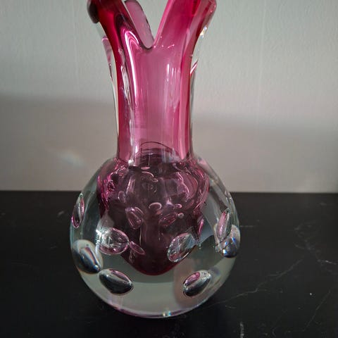 Vi har for salg en Svibel vase i glass, H 15,2 Ø 9.3 cm.