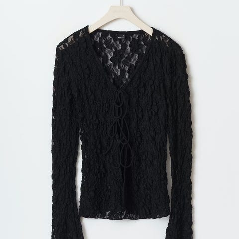 Kvalitetsstoff i 82% viskose og 18% silke gjør denne lekker. Nydelige detaljer med volang hele veien rundt og knyting foran.