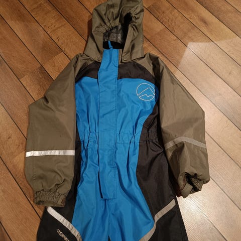 Stormberg parkdress i str 6 år selges. Pent brukt, ingen hull eller bruksmerker sett vekk fra et merke i front som ikke gikk vekk i vask. Fotstrikker er hele.