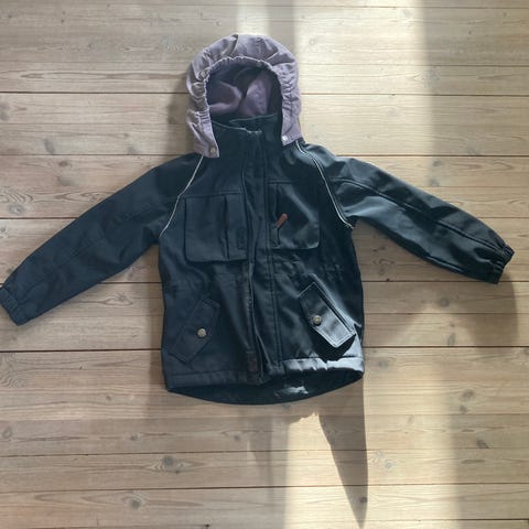 Godt brukt jakke fra kuling. Tåler godt å vaskes. Det er ingen str markering på jakken. Vil tro den er rundt 104/110.,