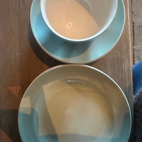 Alle er krakelert 2dype tallerkener 22cm.2middagtallerkner 24cm.Stort rundt fat og sauseskål selges samla for 900+porto