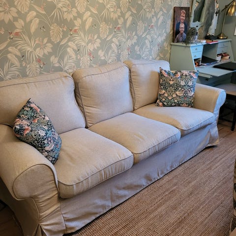 IKEA Karlstsad 3-seter og fotskammel vurderes solgt (eller byttet mot to stk. IKEA Ektorp eller Grönlid 2-seter).