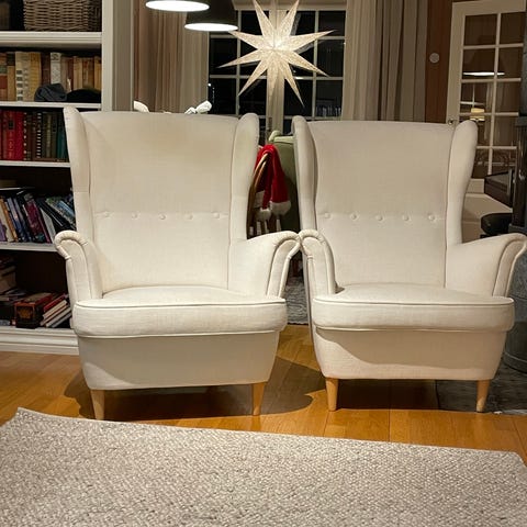 Brukte .kettbå ta av på og vaske trekk.lys beig farge, original stol gul . Noen flekker på original stoff/stol