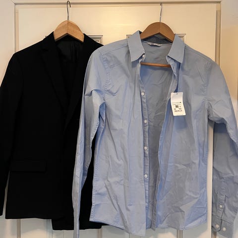 Dress til jul? Cubus dress -dressbukse og dressjakke, hvit og mørkeblå skjorte selges for 600 kr samlet! Meget pent brukt!!