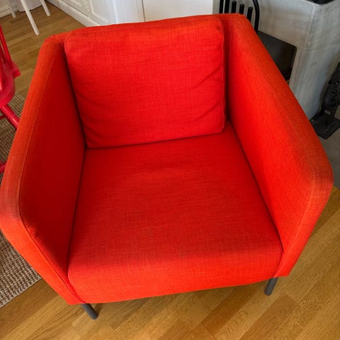 Beige lenestol fra IKEA – kan felles ut