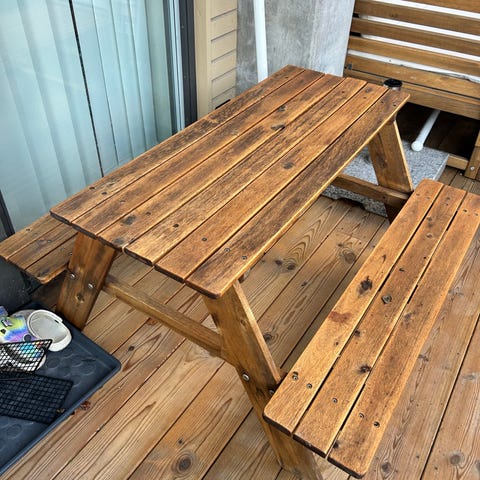 Jollyroom piknikbord med parasoll i hvitt tre. Brukt 2 sesonger, malt i hvit utendørs farge en ekstra gang i år.