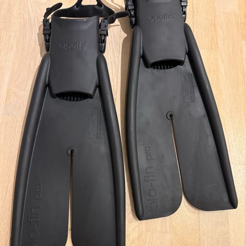 Apollo bio-fin splitfin svømmeføtter. Den ene er large og den andre medium uten at jeg noengang har tenkt på det.