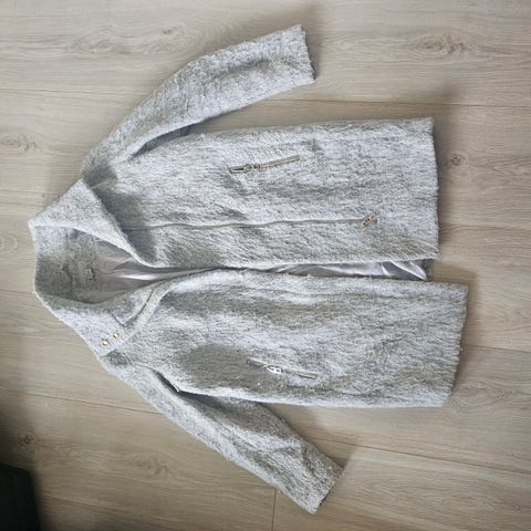 H&M Annet yttertøy for kvinner i størrelse 38. Jakken er svart og laget av ullmateriale. 60%ull. Designet for utendørs bruk med knapper foran og lommer. Passer til kjøligere vær.