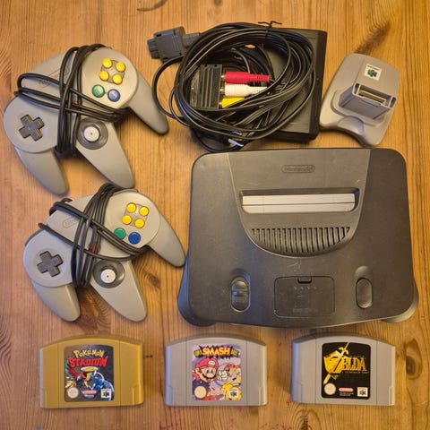 Selger min gamle Nintendo 64, både kontrollerene og spillene fungerer som de skal.