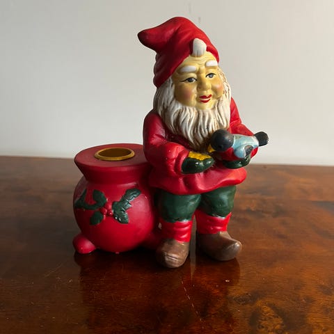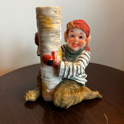 To armet jule nisse lysestake i tre selges.