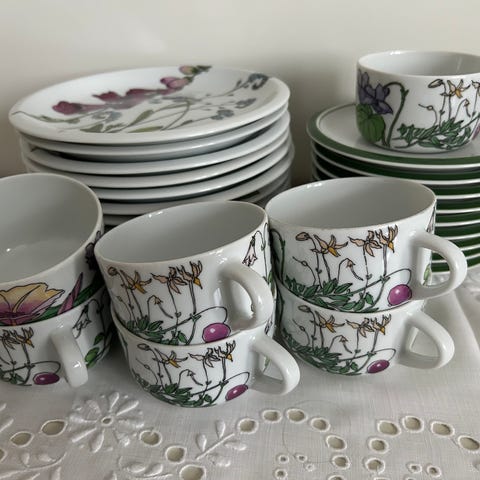 To originale kopper fra svenske Höganäs Keramik, stemplet “Club Johansson”. Disse har den eldre, silkematte glasuren som kjennetegner tidlig produksjon, i motsetning til de senere blankglaserte variantene fra 80–90-tallet.