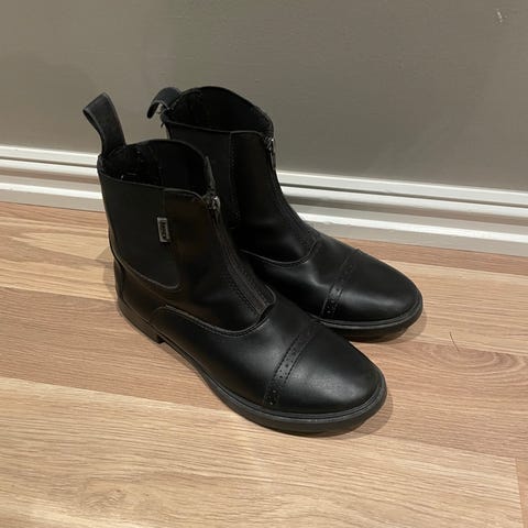 Sorte ridesko i str 38. Lette å ta av og på da det er strikk på begge sider og hempe å holde i bak.