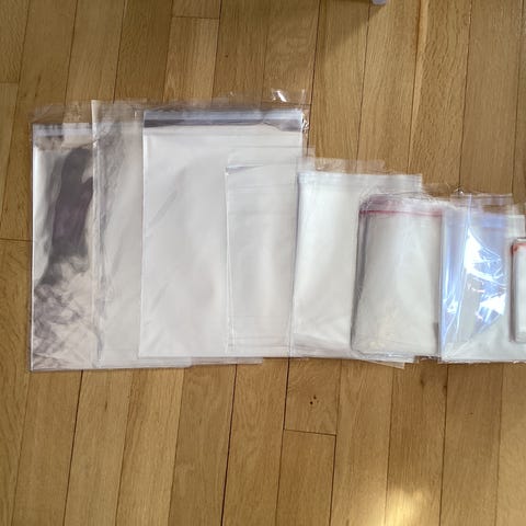 Jeg rydder i cellofanposer-lageret og selger 29 stk kremmerhus med fine «Thank you» tags. Disse fine posene og etikettene er flotte å gi bort som gave med litt hjemmelaget godteri eller småkaker oppi.