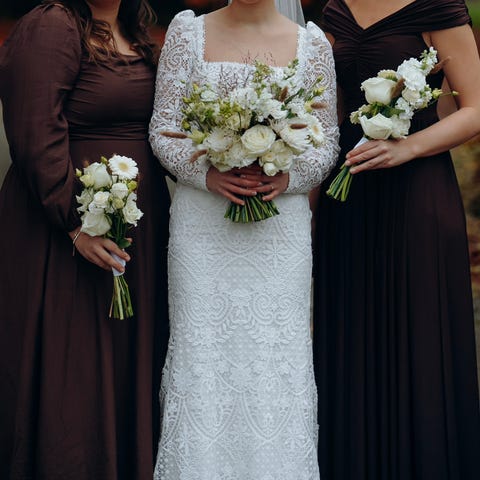 Pronovias brudekjole: Pronovias brudekjole i enkel design med glatt stoff. Bryst og halsutrigning er dekket av tynt tull, dekorert med glassperler. Slepet er redusert, og det er laget sjal av stoffet som ble til overs. Utover dette er det ikke gjort endringer. Kjolen er nyrenset. Den kan prøves hjemme hos meg hvis ønskelig. Jeg er 177cm høy og bruker vanligvis str 40. Ny pris kr 20.000,-.
