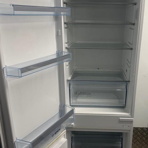 Beko kombiskap med kjøleskap øverst og fryser nederst. Designet for oppbevaring av matvarer med separate seksjoner for kjøling og frysing.