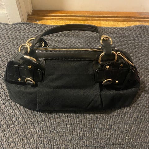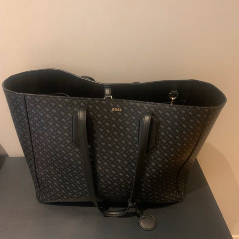 Lite brukt veske i god stand. Svart med gulldetaljer. Kan brukes som tote bag eller som skulderveske med regulerbar skulderrem. Mange lommer for god organisering. Ett rom i midten med glidelås og to rom på hver side. To lommer på utsiden av fronten på vesken og et rom med trykknapp på baksiden av vesken. Skulderrem kan tas av. Dustbag følger med.