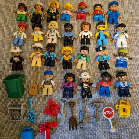 Sønnen rydder og selges noen småleker. Noe duplo, div metalltog fra Thomastoget (usikker på hvilken skinner/bane de passer til), og div små dyrefigurer. Selges kun samlet kr 200,-. Hentes på Heimdal, evt kjøper betaler porto.
