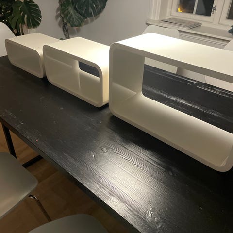 3 veldig fine kubehyller i tre ulike størrelser og to ulike farger. Så og si ubrukte.