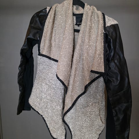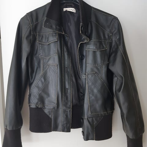 Stilfull svart skinnaktig jakke med lommer i str. 38 fra ICHI. Selges for 150kr