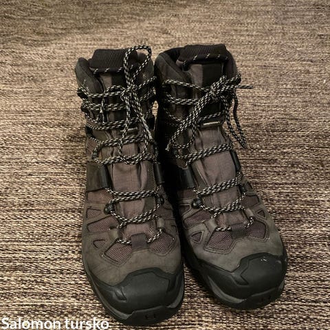 Salomon støvler i størrelse 43 med blå farge. Designet for å gi god støtte og komfort. Sålens mønster gir godt grep på ulike underlag.