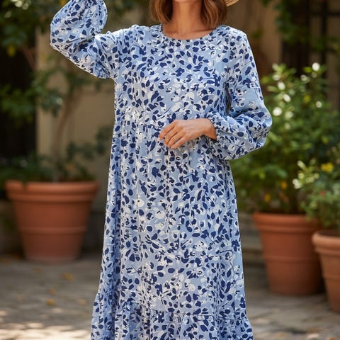 Zara hverdagskjole i blått mønster. Kjolen er designet for kvinner og har størrelse 36. Passer til hverdagsbruk.